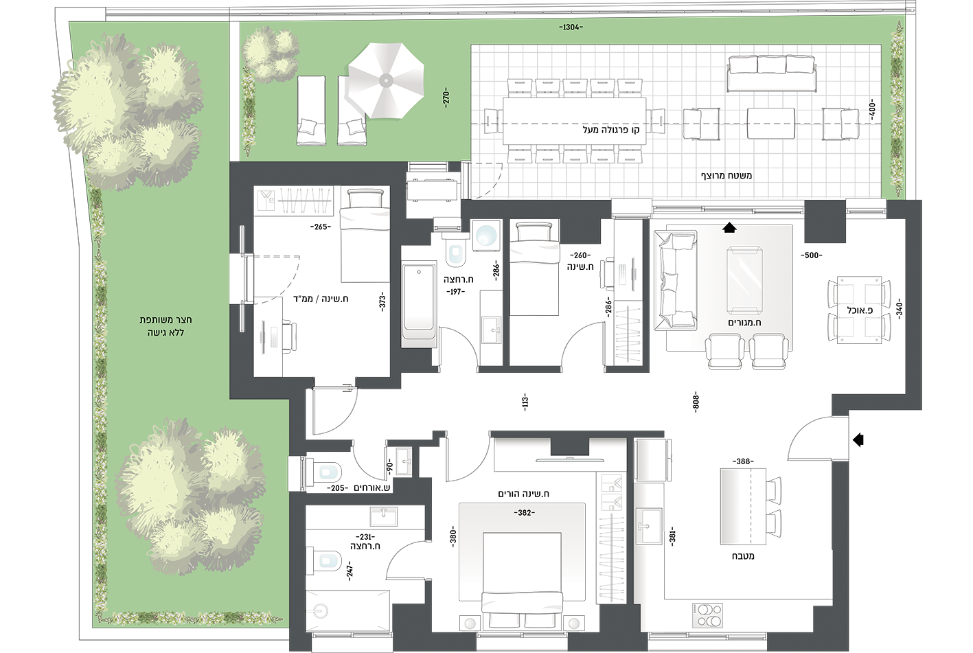 כל הדירות בפרויקט מגיעות עם חניה פרטית ומרפסת סוכה, להשלמת חוויית המגורים המושלמת.
